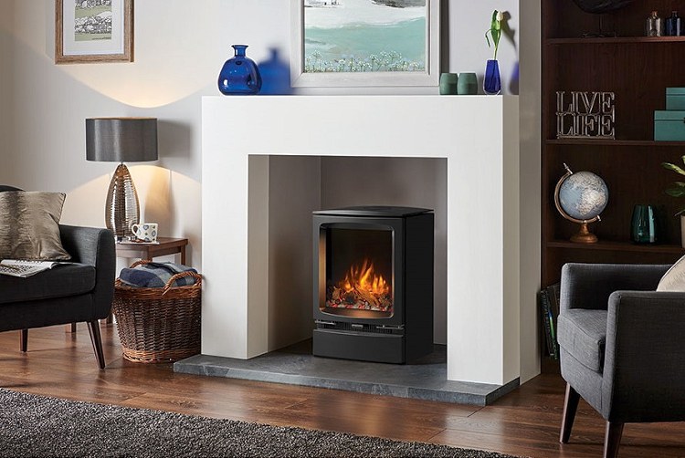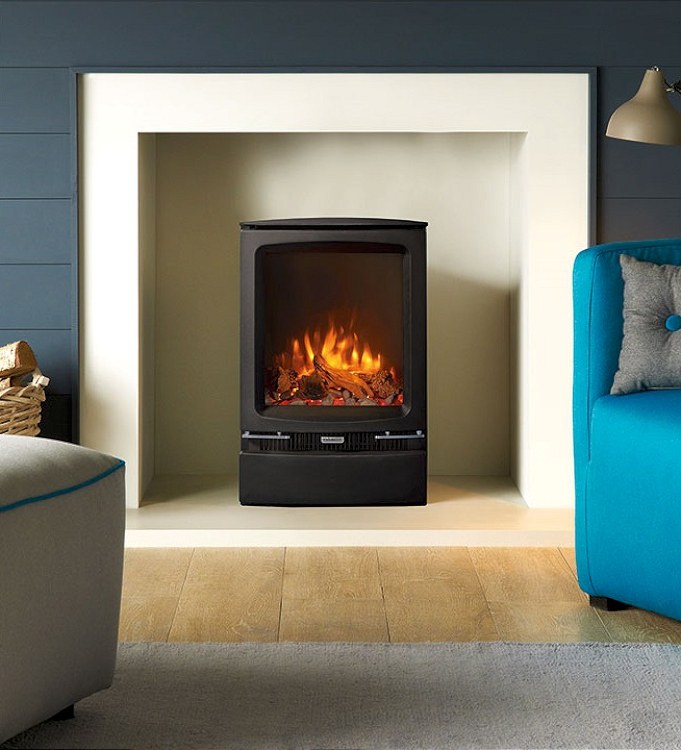 Een degelijke gietijzeren elektrische kachel. Stekker in het stopcontact en hij doet het. Wel nog even de meegeleverde houtset of de meegeleverde kiezels aanbrengen! Of desnoods uw eigen creatie! Deze haard staat bij ons in de showroom brandend opgesteld.