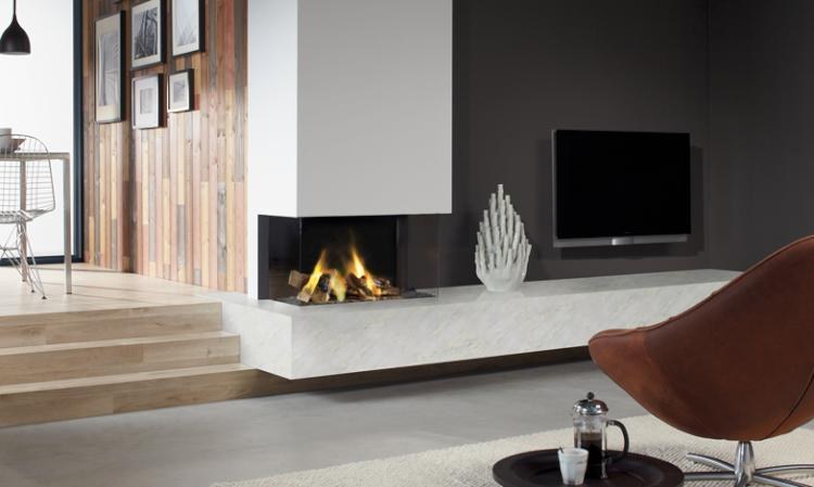Bij deze haard met driezijdig vuurzicht speelt niet alleen het sfeerelement een belangrijke rol, ook de warmteafgifte is behoorlijk en geschikt voor een wat ruimere woonkamer. Door het driezijdige glasraam is het mooie hoge vlambeeld zichtbaar vanuit vrijwel elke positie in de woonruimte.