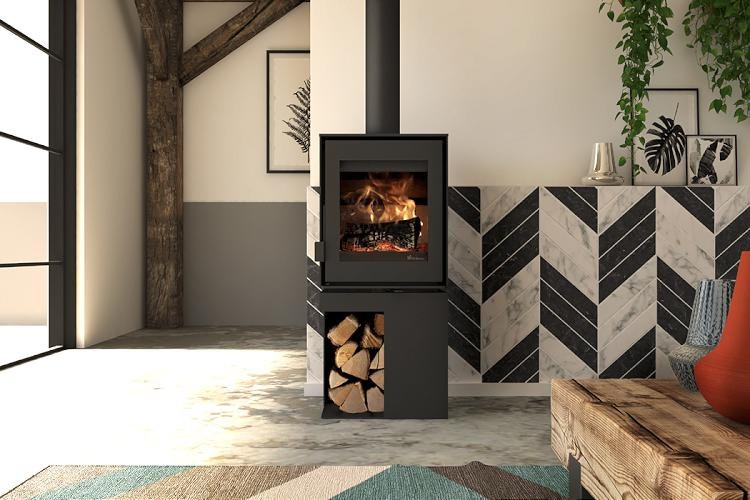 De Modivar 5 Store Front EA is een houtkachel met een groot houtvak voor het opbergen van de blokken hout. Dankzij de royale glasruit kun je de prachtige vlammen goed zien. De houtkachel is makkelijk te bedienen met één luchtschuif en is ook verkrijgbaar met een houtvak Store Corner of een plateau.