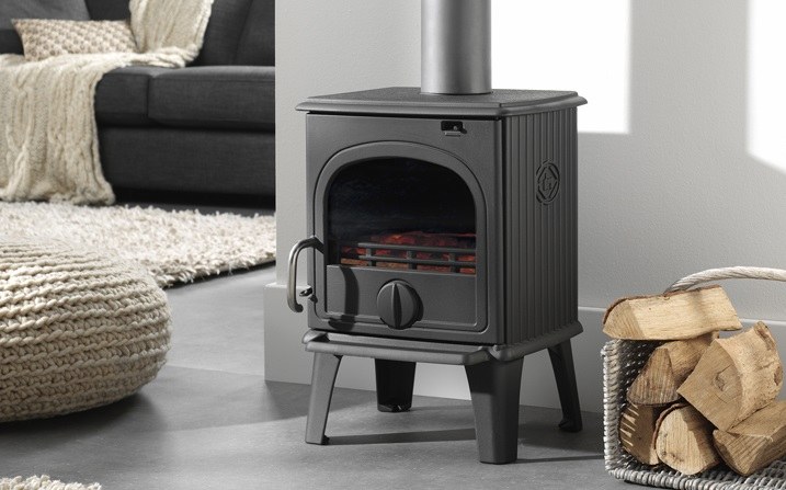 Compacte gietijzeren houtkachel met een laag vermogen. 4.5 kW