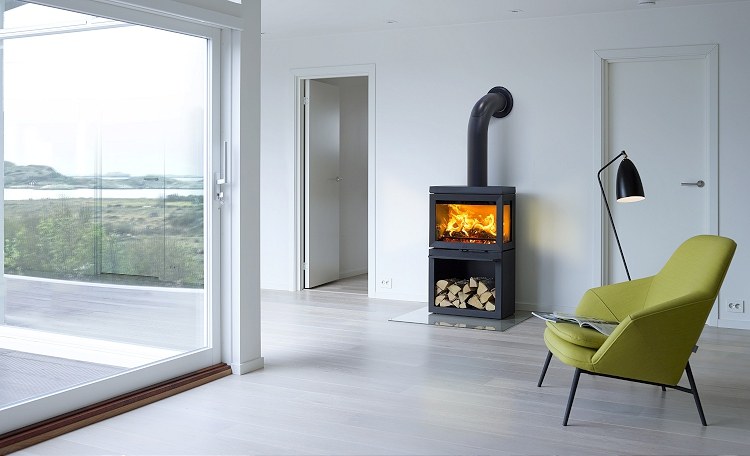 De Jotul F520 biedt een panoramisch zicht op het vuur, hieroor lijkt het alsof u een kampvuur in de woonkamer heeft branden.