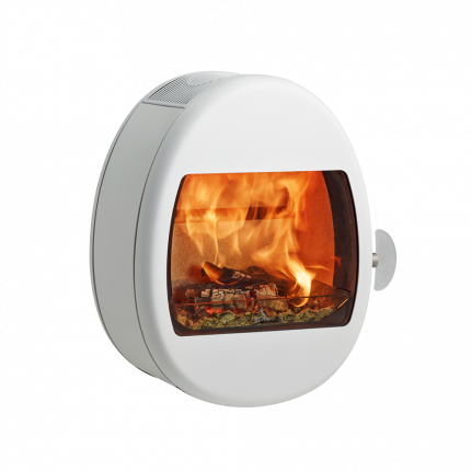 De kachel is ook leverbaar in de kleur wit. Meerprijs: € 300,00
