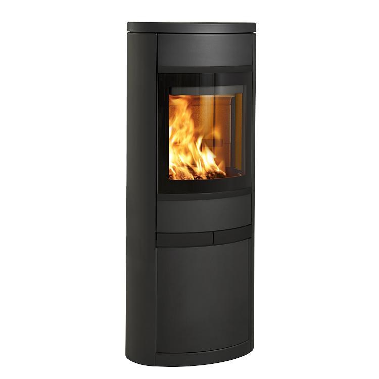Deze kachel wordt geleverd met zwarte deurgrepen en zwarte kaders.