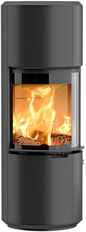 Strakke luxe houtkachel met ronde vromgeving. Houtblokken van 40cm kan de kachel prima aan. De kachel heeft een hoog rendement maar een erorm schone verbranding.