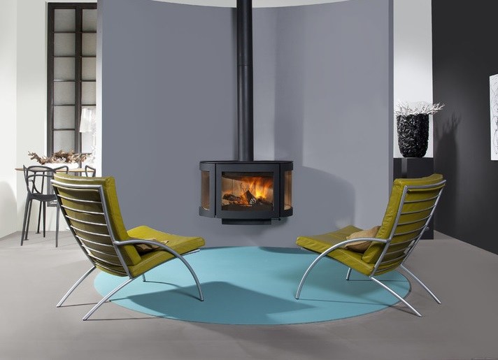 3 zijdige houtkachel met prachtige rondingen